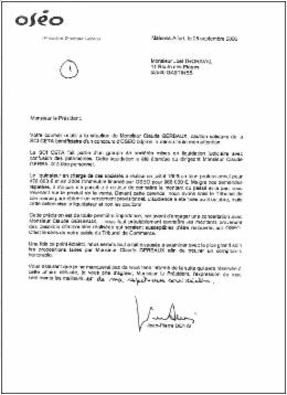 Courrier de Mr Jean Pierre DENIS, Président Directeur General d'Oséo