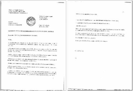 "Suite là l'entretien, que vous avez eu avec Fréderic BERNARD-METTIL, Directeur General de notre concession, je vous confirme notre position concernant la reprise éventuelle de la société S.N.G.A.